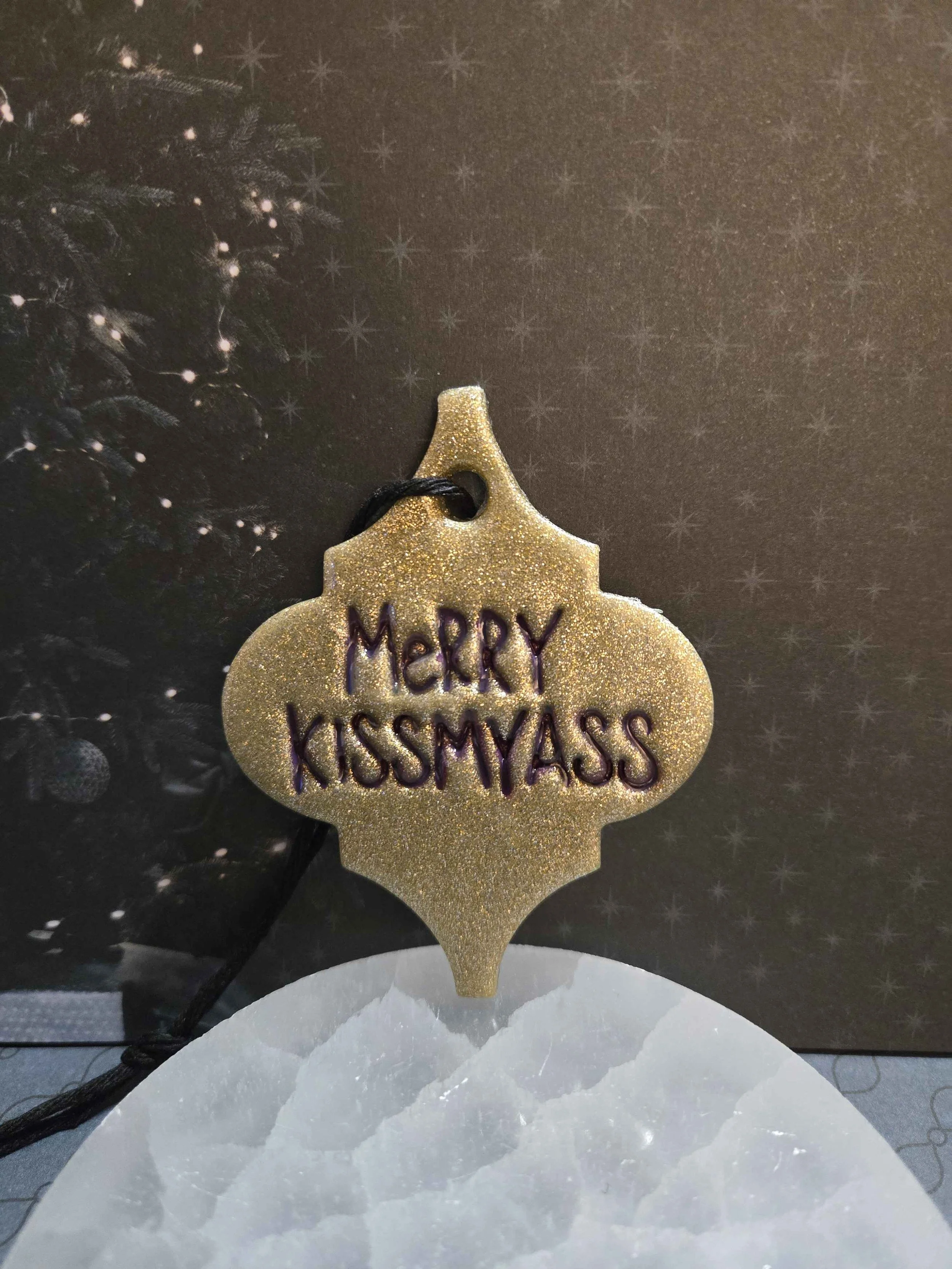 Ornaments Categories: All Accessories Curios Boo Crew Figurines Cemetery Zen Gardens Decorative Slates Magnets Stickers Ornaments Magick Incenses Self-Care Intention Oils Spells Deity Intention Oils Perfumes Jewelry Bone Jewelry Bracelets Earrings Gift Cards All / Curios / Ornaments Festive as Fuck Ornament Summoning the Holiday Spirit Ornament Merry Kissmyass Ornament